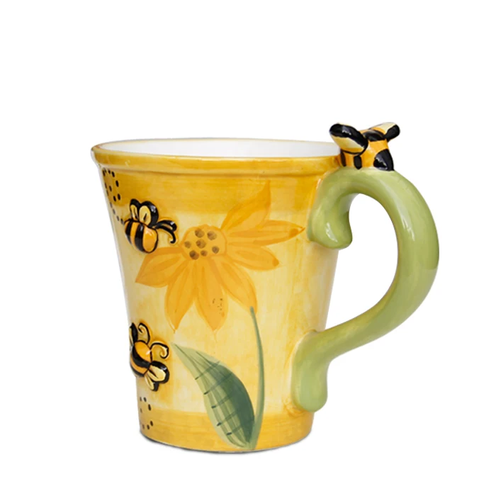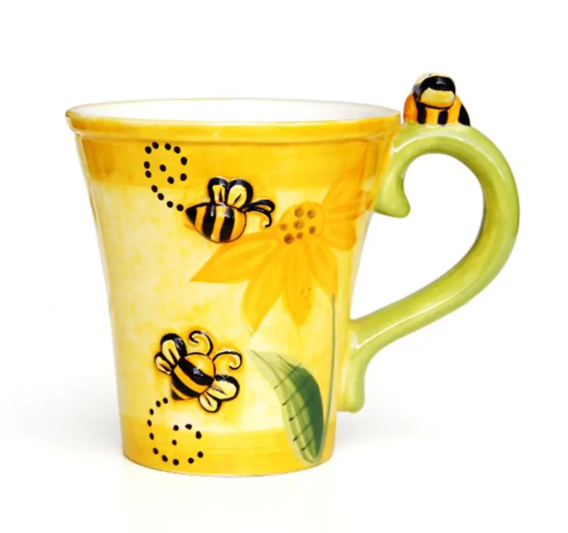 HOT Sale Creative Hand-painte Relief Bee Ceramic Handle Water Cups Milk Coffee Cups Travel Souvenirs Mugs Ho