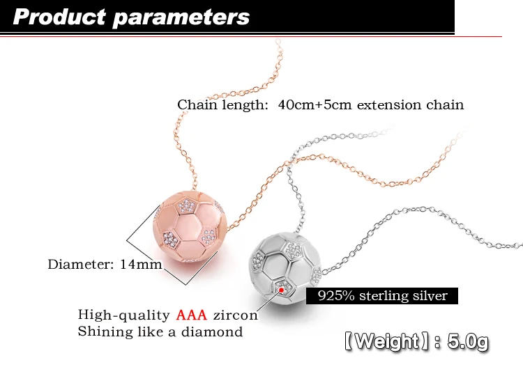 Fashion creative football pendant necklace. 100% Solid 925 sterling silver women's jewelry. Wholesa