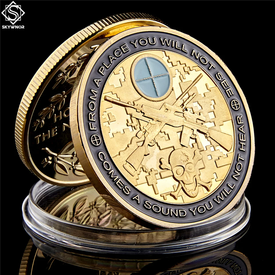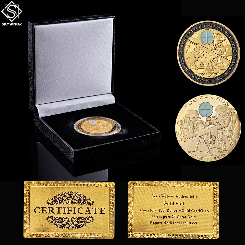Challenge Coin USA Sharpshooter Skull Gun Military Souvenir Coin W/ Luxury Coin Box