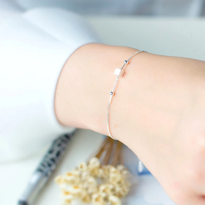 HOT Sale Retro brushed square bracelet female S925silver minimalist personality trendsetters jewelry student