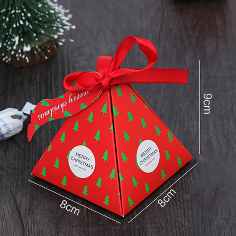 10 Pcs Christmas Theme Triangle Pyramid Gift Box Xmas Tree Ornament Cookie Candy Boxes New Year Dec