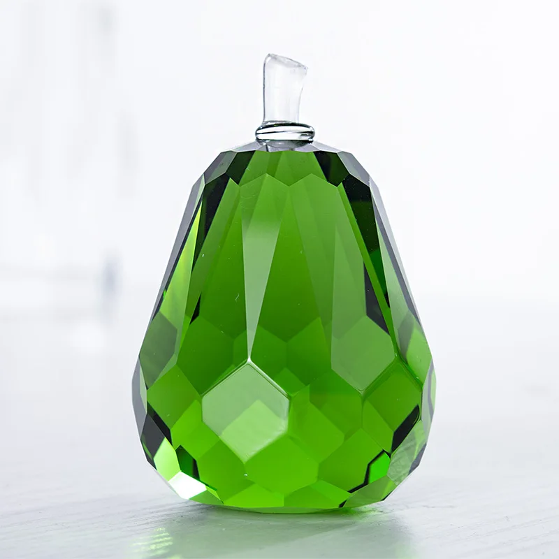 H&D 60mm Cut Crystal Pear Paperweight Glass Fruit Figurines Home Decoration Arts&Collection Christm